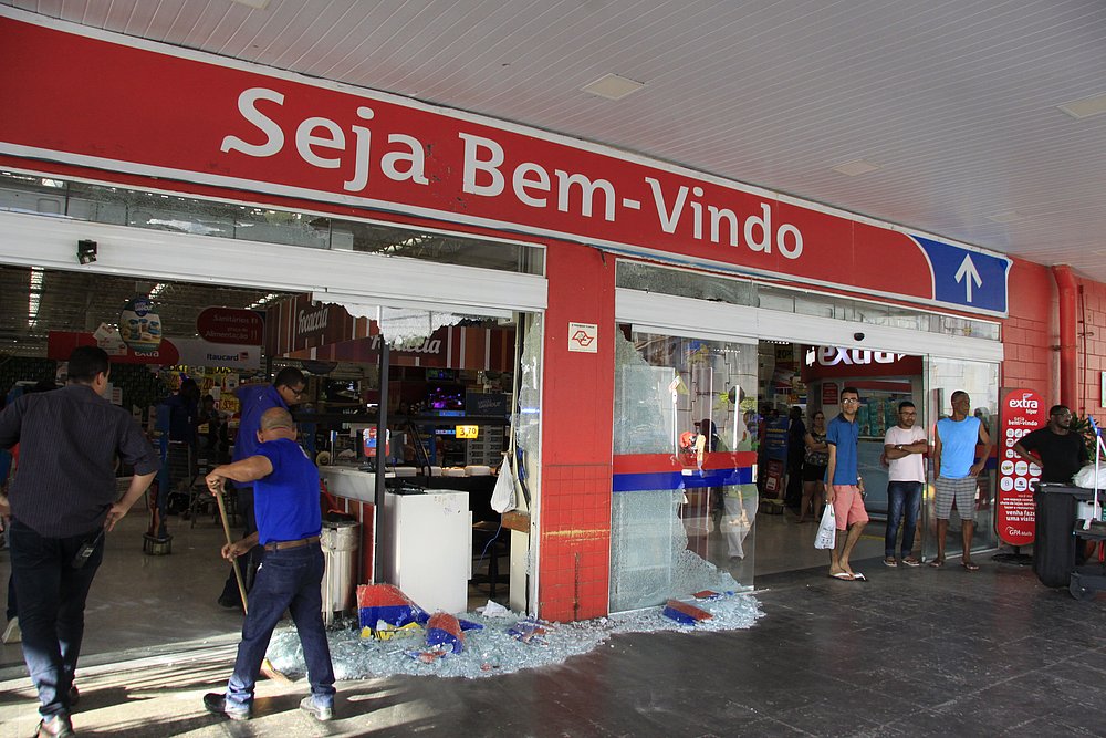 Em outro vídeo, um cliente do supermercado registrou o estrago provocado pelo tiroteio. É possível ver a porta de vidro estilhaçada na entrada do estabelecimento, um dos seguranças descendo do carro-forte e pessoas assustadas falando ao telefone. Os tiros acertaram o interior do supermercado e produtos, como latas de cerveja que estavam nas prateleiras.