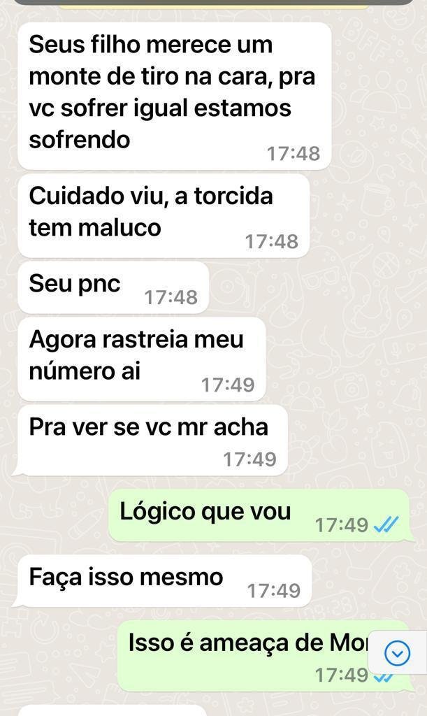 O Bahia Notícias teve acesso a uma das mensagens enviadas ao celular de Fábio Mota por meio do WhatsApp, em que o criminoso promete dar alvejar com tiros os filhos do dirigente.