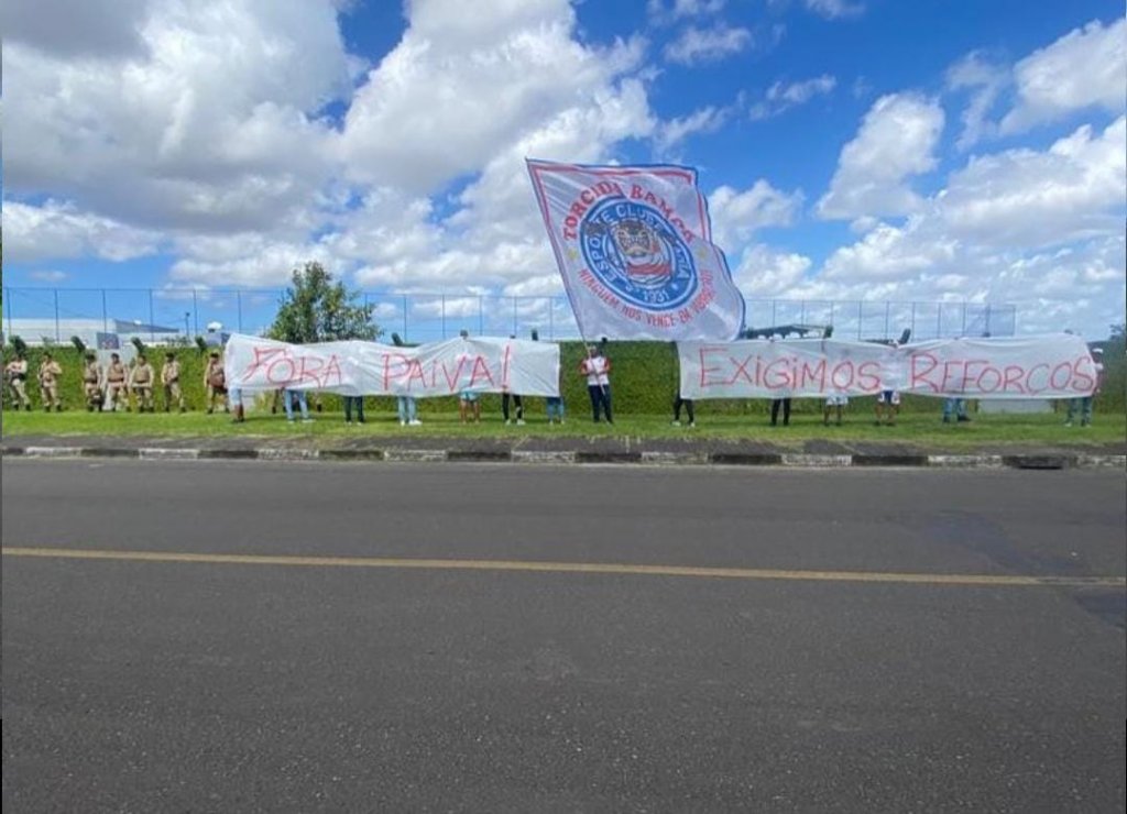 O grupo, que se instalou na porta do centro de treinamento, está sendo observado de perto pela Polícia Militar. De acordo com apuração do Bahia Notícias, não ocorreu nenhuma confusão.